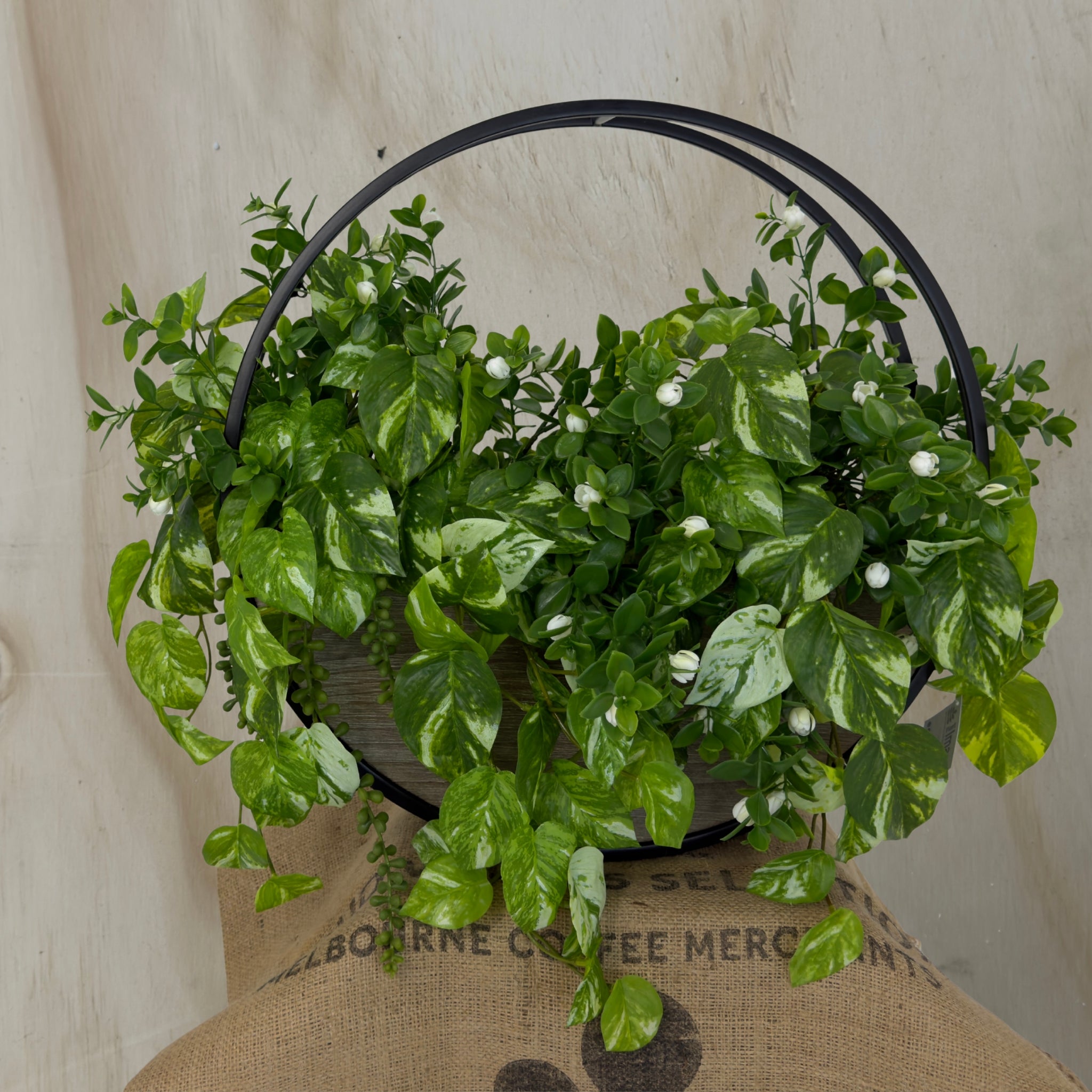 Crafted from realistic artificial foliage with varied leaf shapes and tones, this greenery wall piece offers dense coverage that mimics a real plant arrangement. It is ideal for adding greenery to small spaces, renters’ homes, or darker corners where real plants struggle to thrive. Simply hang the round planter on a secure hook and enjoy instant, maintenance‑free wall decor all year round.
